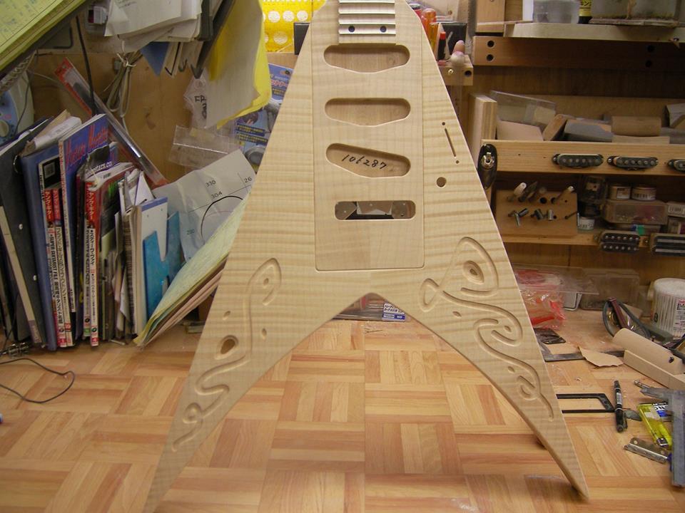 美女丸モデルのフライングVをオーダーされたファンの方が、その制作過程の写真をfacebookにアップされていました。