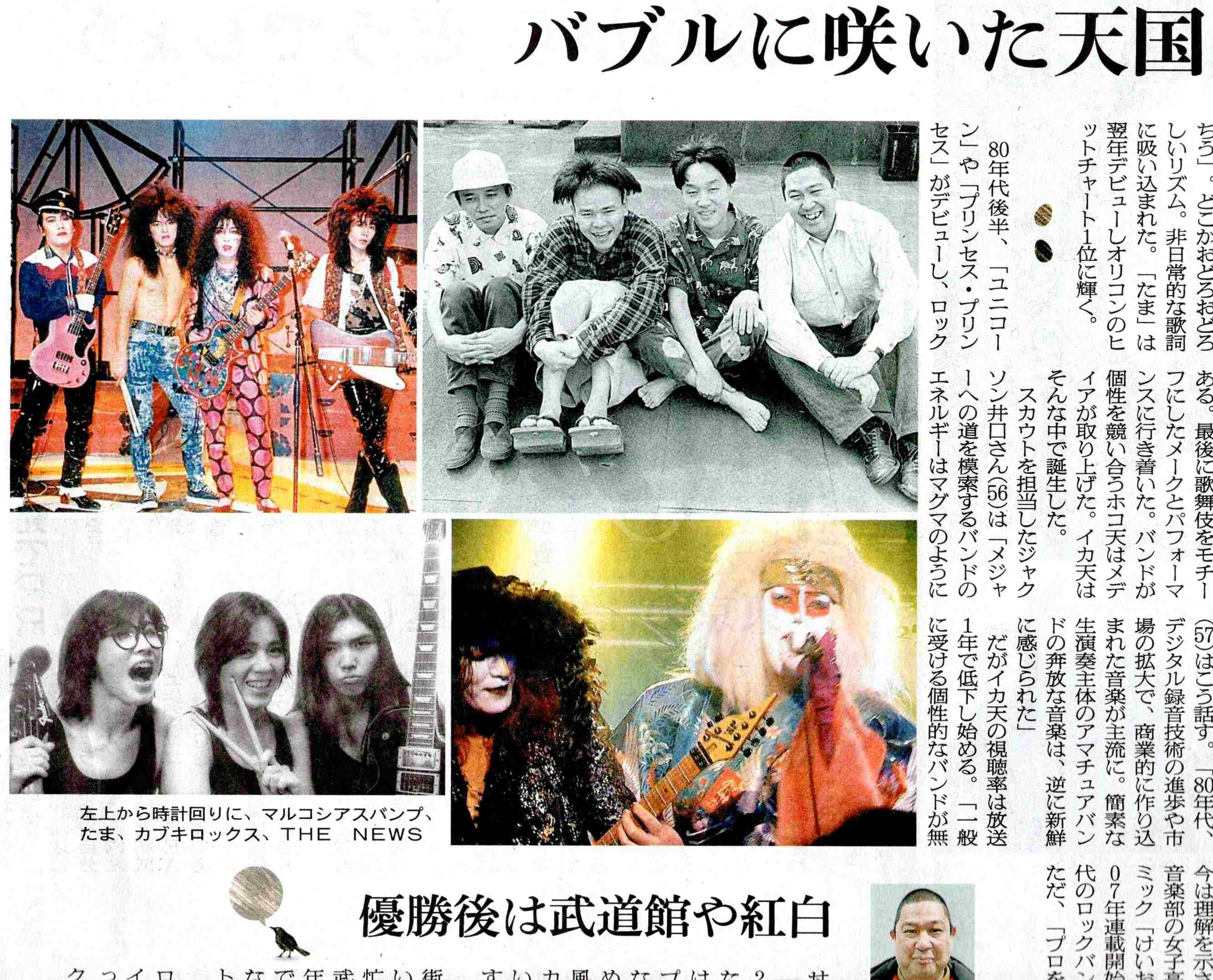 ソチ五輪開幕の記事に混ざって、KABUKI・ROCKS、MARCHOSIAS・VAMP、たま、THE・NEWS。